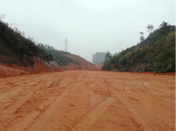 本工程所處區域地勢較為起伏,山丘林立,沿線(xiàn)主要為山地、魚(yú)塘、耕地、林地、場(chǎng)平地及局部民房等。相交道路除虎民路、環(huán)城路為現狀道路(金山大道在建)外,其他道路均為規劃道路(未建)。